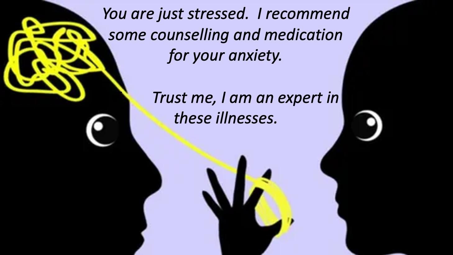 Before we go any further, I want to emphasize just how miserable this is to go through as an injured patient. Imagine what it would be like if (due to the medical injury) the world you had previously known collapsed around you and every single person you trusted (including your friends and family who defer to the judgment of “experts”) told you that it was all in your head and you just needed psychiatric help. It’s a perfect recipe for going insane.