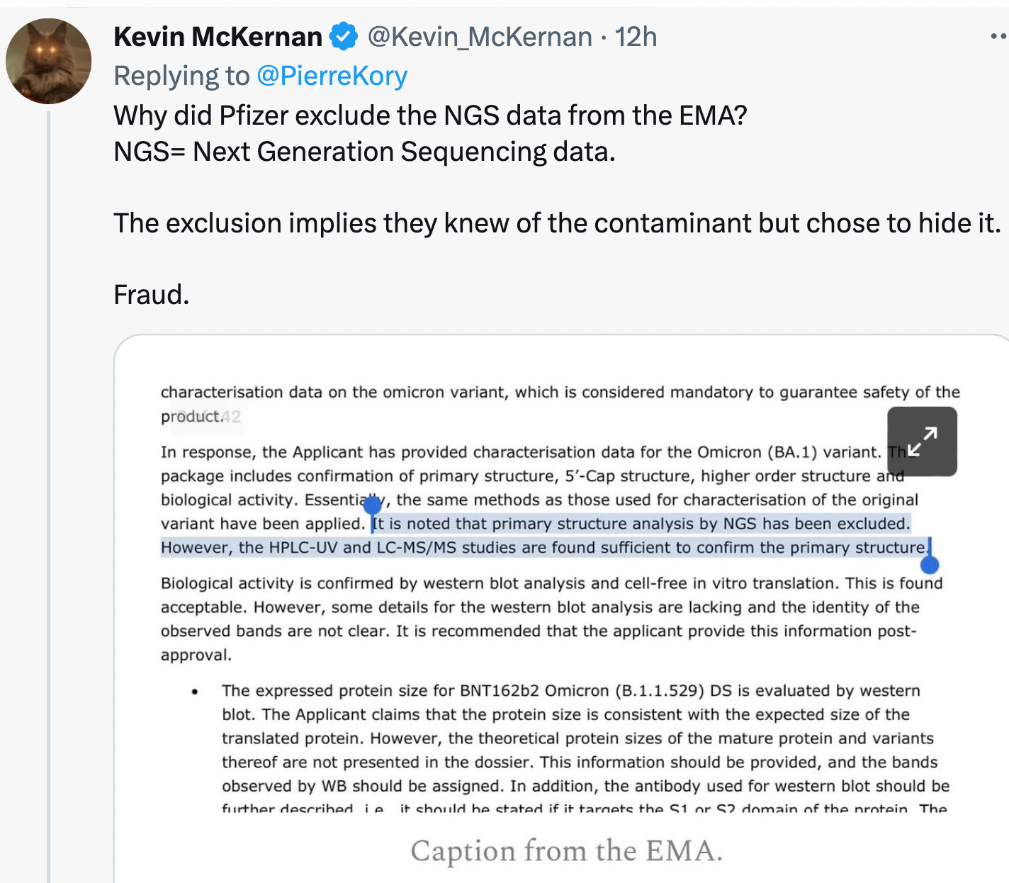 Additionally, Kevin McKernan, the one I originally learned of this investigation from, also highlighted a key omission from this piece to Pierre Kory (their investigation that was the focus of this article used next generation sequencing to analyze the DNA present in the vaccine vials):