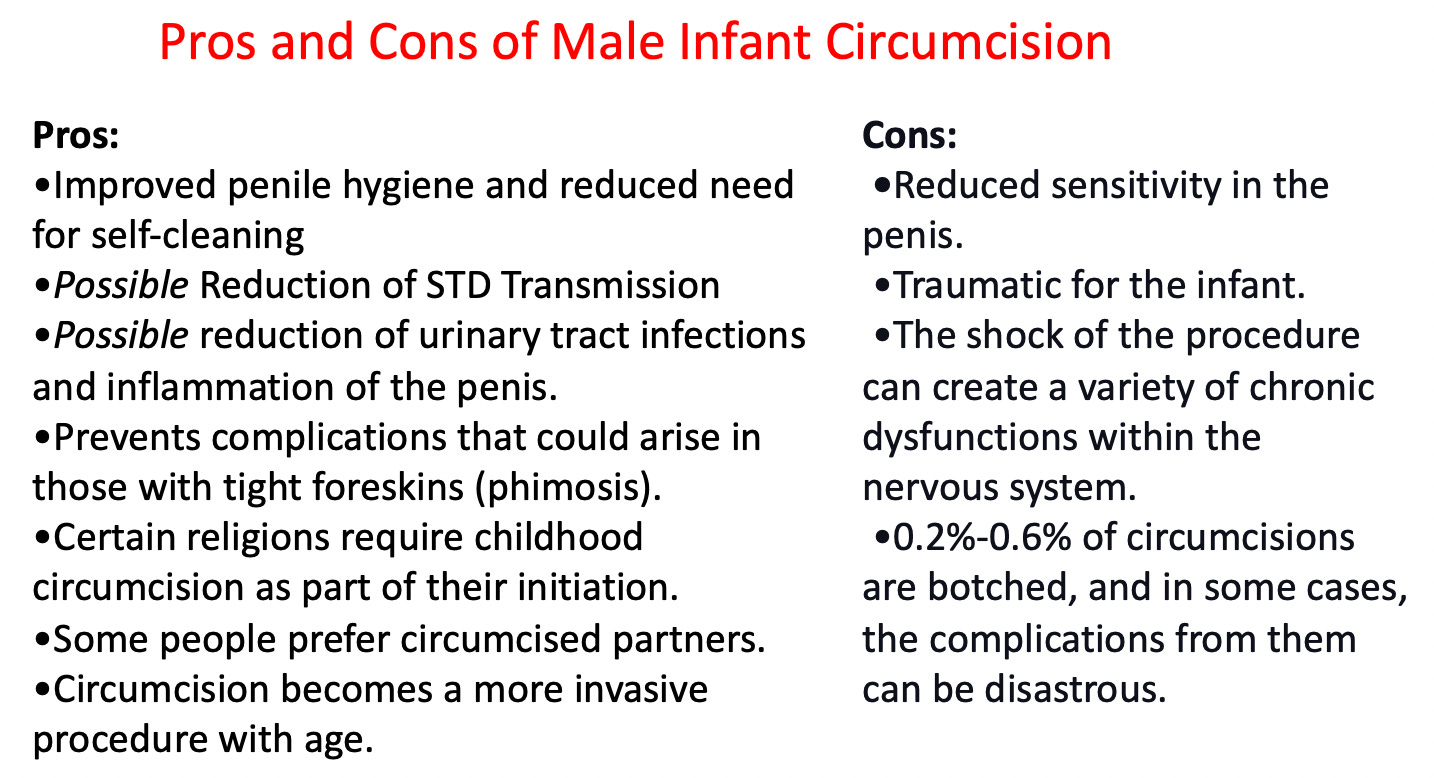 In the case of circumcisions, I believe their primary reason for being performed is because they are a source of guaranteed income for the doctor (and the facility they work for). The thing I find particularly interesting on this subject is that for most of the doctors I’ve asked who routinely perform these procedures, they are largely unaware of the pros and cons of the procedures. Instead, they just view circumcisions as something you do and rarely even think to question them.