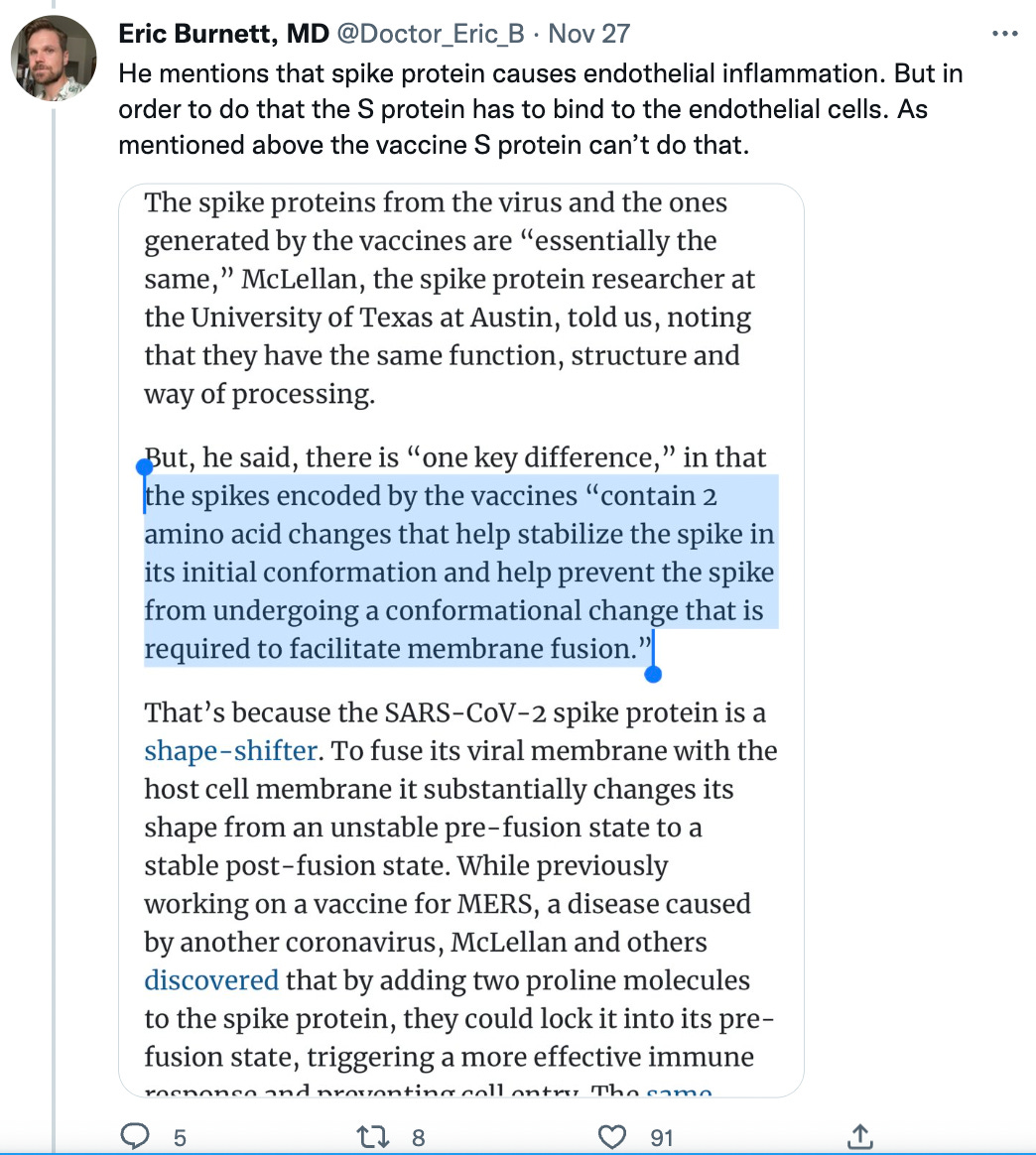I sincerely hope this final Tweet serves to effectively illustrate many of the points I have shared throughout this series, and I sincerely thank Dr. Burnett for candidly revealing his internal thought process (some of which I even agree with). I also must thank him for a relatively fair fact-check (compare it to this one Kirsch recently reviewed) and for not attempting to debunk or attack aspects of my argument, which fall completely outside his knowledge base (e.g., the discussion on colloidal stability and microclotting).