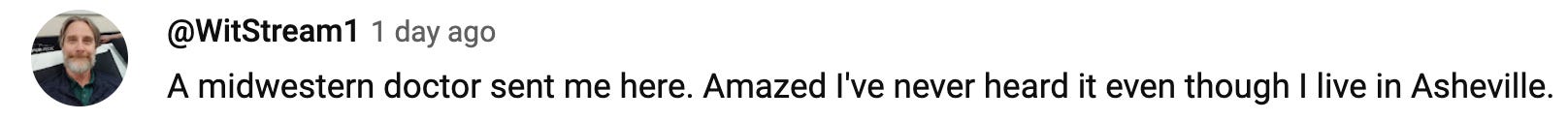 Fifth, I really like to share things with that others that create joy for me. For example, I like ephemeral music, and one of my favorite songs is an ephemeral song that accomplishes something that’s often quite difficult to do—having that quality in tandem with an upbeat (joyful) melody. Since it was inspired by the area Hurricane Helene hit, I felt it was appropriate to share, and then was delighted to find this comment on the song!