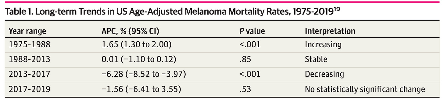 This study, in turn, illustrates exactly what the result of our war on skin cancer has accomplished: