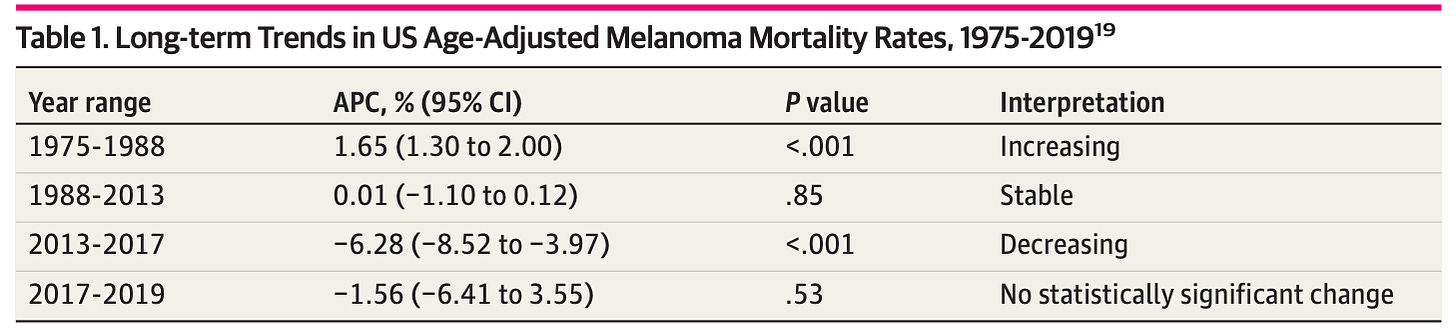 Another study illustrates exactly what the result of our war on skin cancer has accomplished: