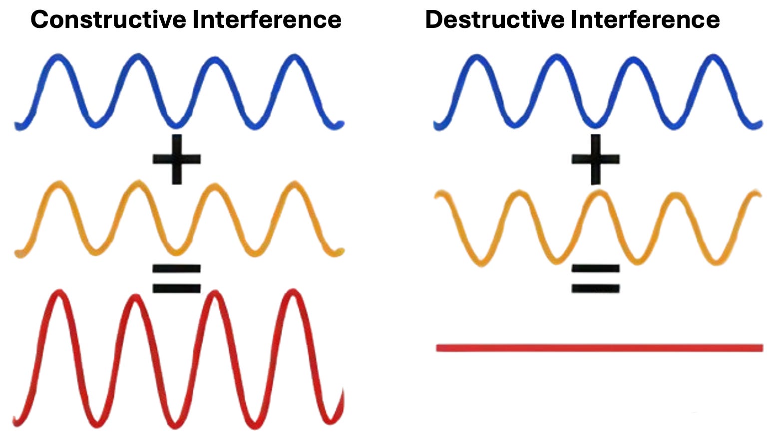 For context, any time a wave propagates, if force is added into it, it can either enhance or cancel out the wave (or do some combination of both), all of which depends upon how it aligns with the existing wave. Consider for example a pendulum swinging back and forth. If, when it swings left, you hit it (to push it left) the amplitude (height of its swing) will increase, while if you instead hit to the right, that will cancel out the existing swing to the left and decrease the total height of its swing. Similarly, with an existing wave: