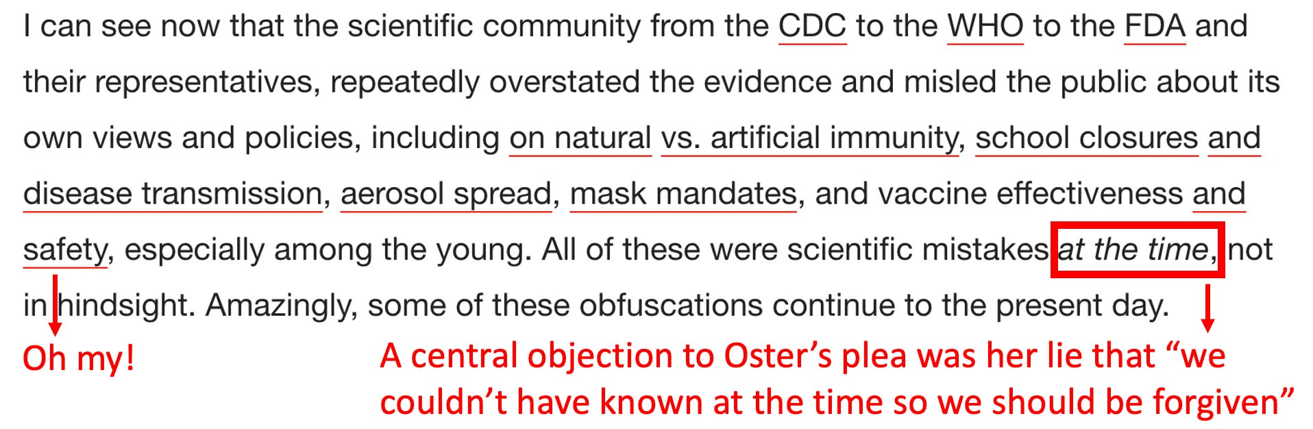 Because of how much things have changed in the last 3 months, we are now in the position to ask for a lot more than before, which is why a much more candid apology is being given. Nonetheless, I still feel that Emily Oster made a disingenuous apology. However, since there is a lot more nuance here than in Oster’s (as this one attempts to be more persuasive), I felt compelled to place Oster 2.0 under a microscope.