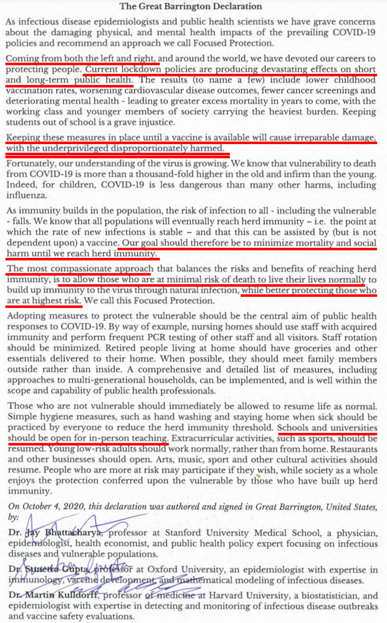 The first was that the Great Barrington Declaration proved itself correct: