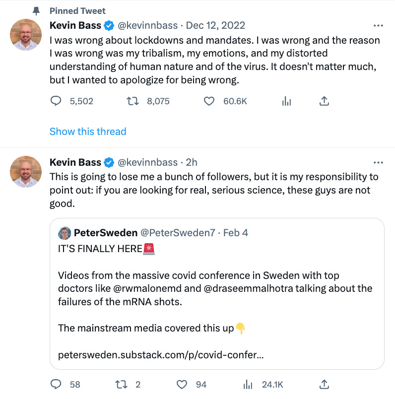 Kevin Bass, BTW, became a “relevant” medical commentator for pumping out absurd, vitriolic, unhinged hit tweets against anti-establishment science writers in the field of diet and nutrition.