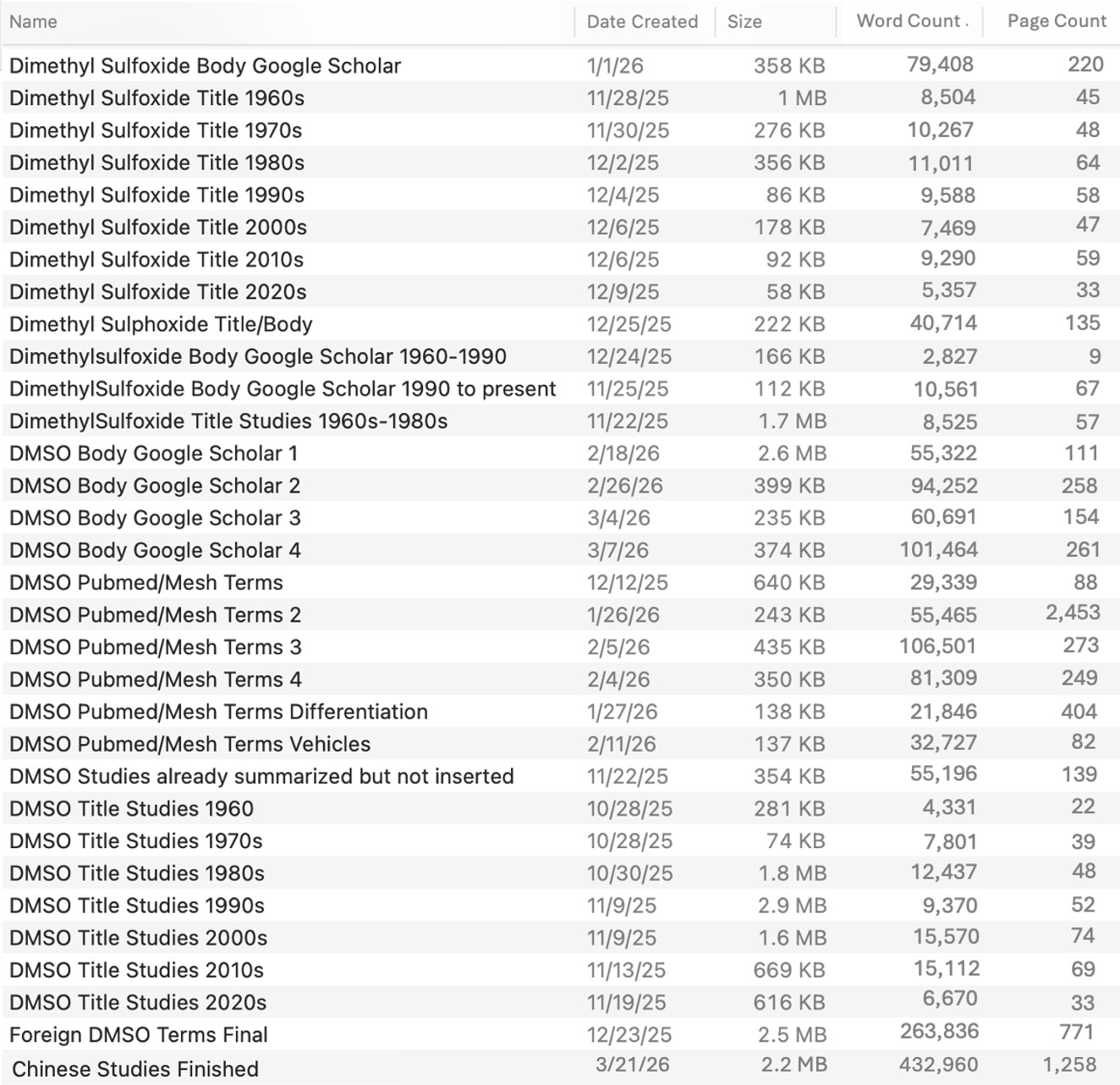 There are a lot of other DMSO articles in the cue, and in the next few weeks, they will finally start coming out now that all the source documents are completed (and just need to be sorted).