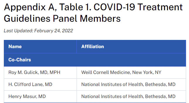 It turns out at least two of them had a close relationship with Anthony Fauci who as best as I can tell arbitrarily appointed them to chair (his) panel. Henry Masur, pictured above and his appointment is discussed here.