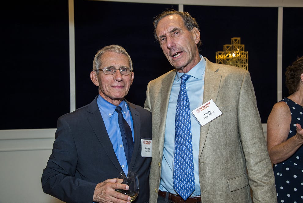 I was unable to find any connection between the final co-chair Roy M. Gulick and Fauci. However, as they worked in nearly identical fields (Gulick is chief of Cornell’s division of infectious disease, and frequently conducts research particularly relating to AIDS medications), it is quite likely they frequently crossed paths.