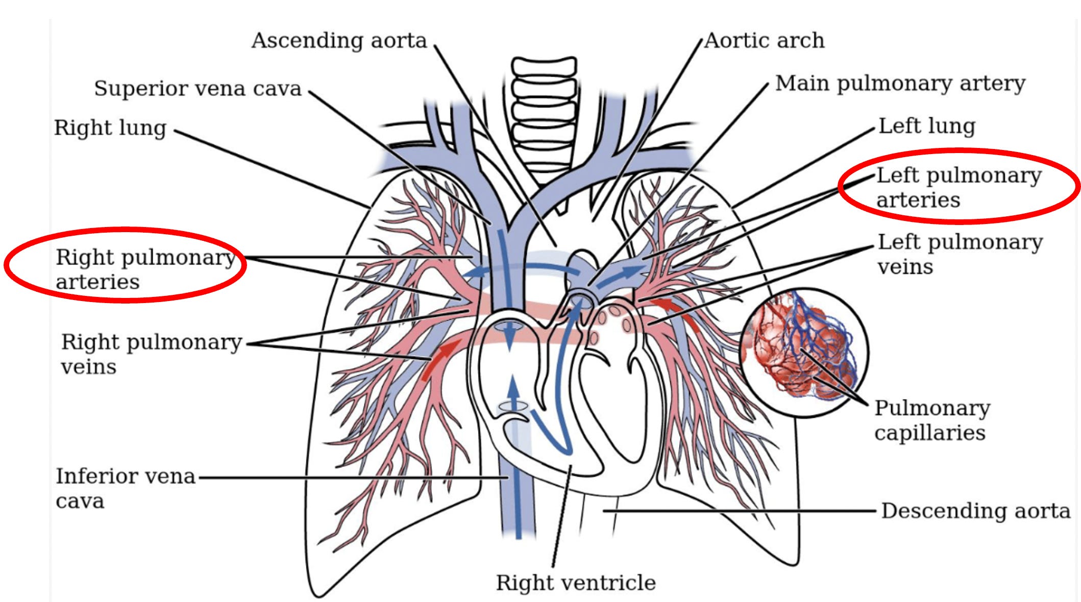For reference, the pulmonary arteries bring deoxygenated blood from the heart to lungs: