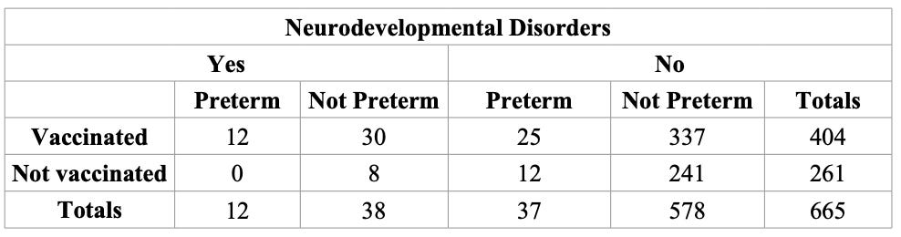Additionally, this study also found premature infants were dramatically more vulnerable to the effects of vaccination (e.g., they were 4.137 times more likely to develop a developmental disability).