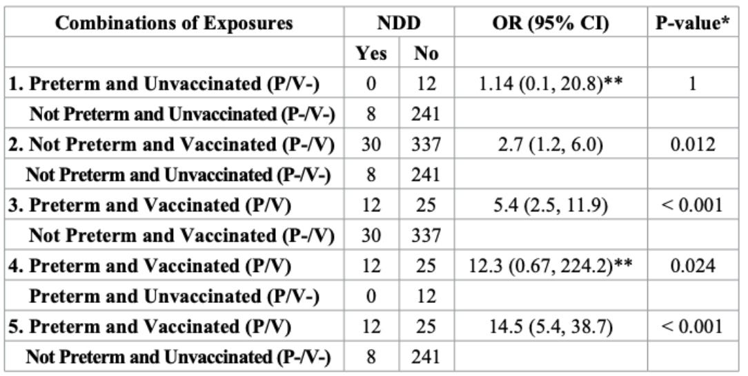 Additionally, a more detailed analysis (in a parallel study) found vaccinating premature infants caused a 5.4-14.5X increase in these disorders.