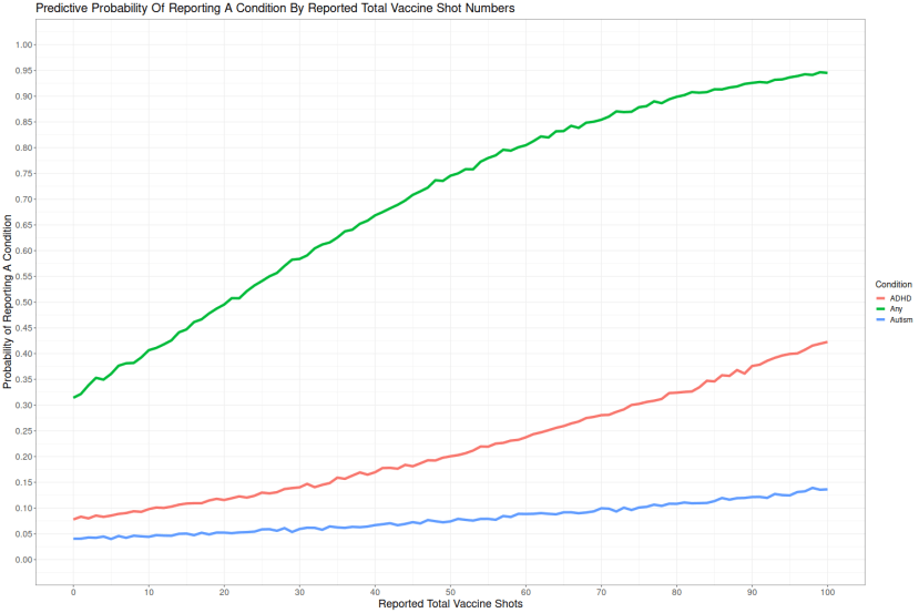 From this, he found similar results to the previously mentioned parties. For example in his first survey of ~10,000 people, he again demonstrated the dose-response relationship between vaccination and chronic illness: