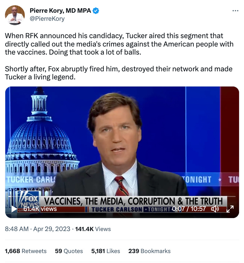 After Tucker was fired on April 24th, RFK Jr. shot up in the polls and is now at 20%, which is quite frankly astounding.