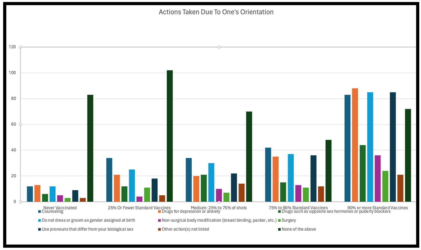 •Parents who don’t vaccinate likely are more politically opposed to encouraging transgenderism. Likewise, parents who don’t vaccinate are typically much more opposed to providing a myriad of other pharmaceutical drugs that frequently cause significant neurological and psychiatric issues (e.g., statins, puberty blockers and antidepressants).