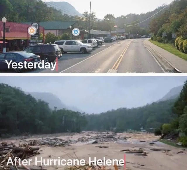 In turn, as best as I can tell, the Federal response to Helene only started after Trump and Elon Musk drew attention to it by visiting the area, setting up donations for the victims and delivering aid directly to the community (e.g., Musk has sent hundreds Starlink kits into the area to reestablish the vital lines of communication with the internet—and also make it much harder to control the narrative of what is happening there).