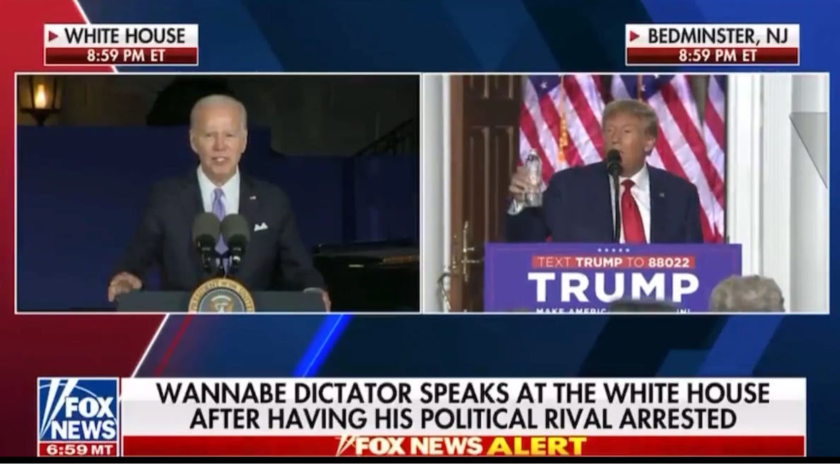 Note: Biden’s speech juxtaposed with the fictional dictator’s speech can be viewed here.