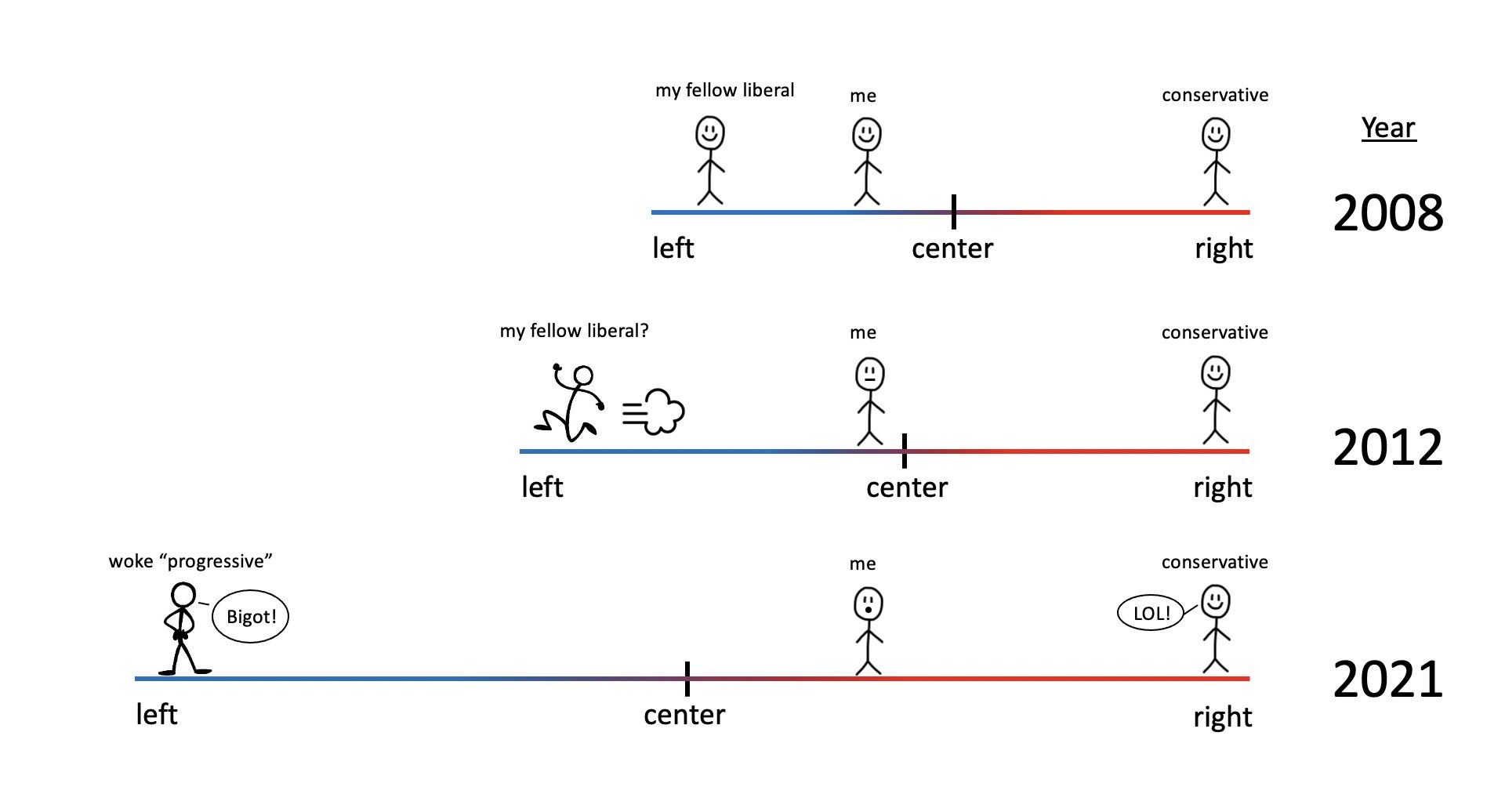 This hyperpolarization and the tendency of the activist Left to overplay their hand on a variety of social issues has reciprocally caused a large degree of alienation in many of the progressives who traditionally supported the Democratic Party (for example leading many of them to join Trump's political movement). I also believe the activist Left’s decision to go all in on vaccine mandates since 2014 illustrates that many of their political positions are spoon-fed to them by corporate oligarchs and do not in any way represent their actual values. A meme that was recently reposted by Elon Musk eloquently describes what has happened over the last decade: