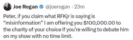 When this article was originally posted, I accused Hotez of inciting the government to target his political opponents—unacceptable behavior I believe is motivated by both Hotez’s unwillingness (and inability) to ever have to debate anyone who disagrees with him and Hotez being a shill who advances the interests of the vaccine industry. Shortly after Hotez gave one of the most transparent illustrations of this I have seen after Rogan had a remarkably popular episode with RFK Jr. :