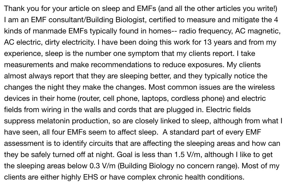 Likewise, I find that some people can’t sleep in high EMF housing, some notice they get more restorative sleep in low EMF housing, and many others have no issues being saturated by EMFs and external light while they sleep. This in turn touches upon one of my key principles in medicine—you have to acknowledge that different individuals can have a very different response to the same stimuli, and you cannot generalize one’s experience onto others.