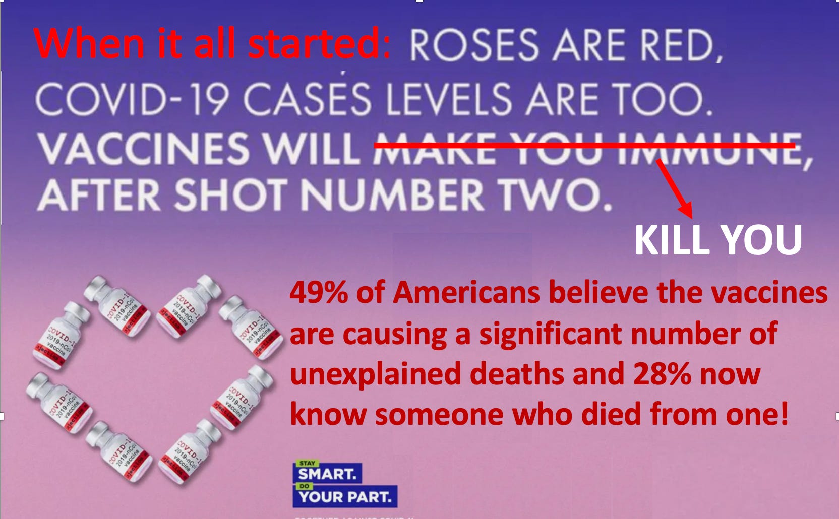 A more detailed breakdown of that poll can be found in the above article. The key point was that despite all of the over-the-top propaganda (detailed in the article above) and censorship that we have experienced over the last two years, only 56% of the population believes the vaccines are effective, and 57% have concerns about their safety.