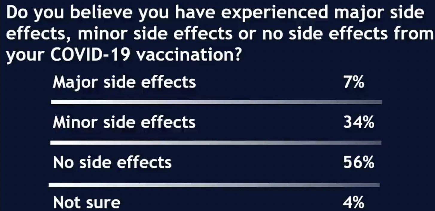 For reference, 7% of all currently vaccinated Americans is 12 million people (additionally, based on other data points I’ve seen, I believe the respondents appropriately categorized their side effects as being “major” in nature).