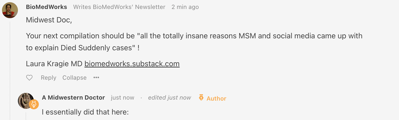 Note: Many have reached out to me to share that someone they were close to had died from the COVID-19 vaccine. This substack was largely a result of my attempt to compile these reports and share them with the public.