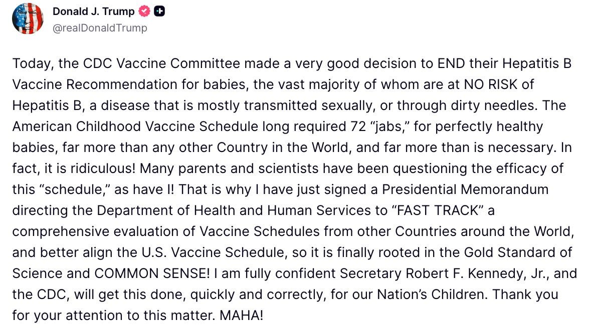 Despite this pushback, I was nonetheless hopeful MAHA would then turn their attention to the next most unjustifiable vaccine on the CDC schedule, newborn Hepatitis B vaccination (and possibly also consider questioning the other particularly egregious vaccination—the HPV vaccine Gardasil).