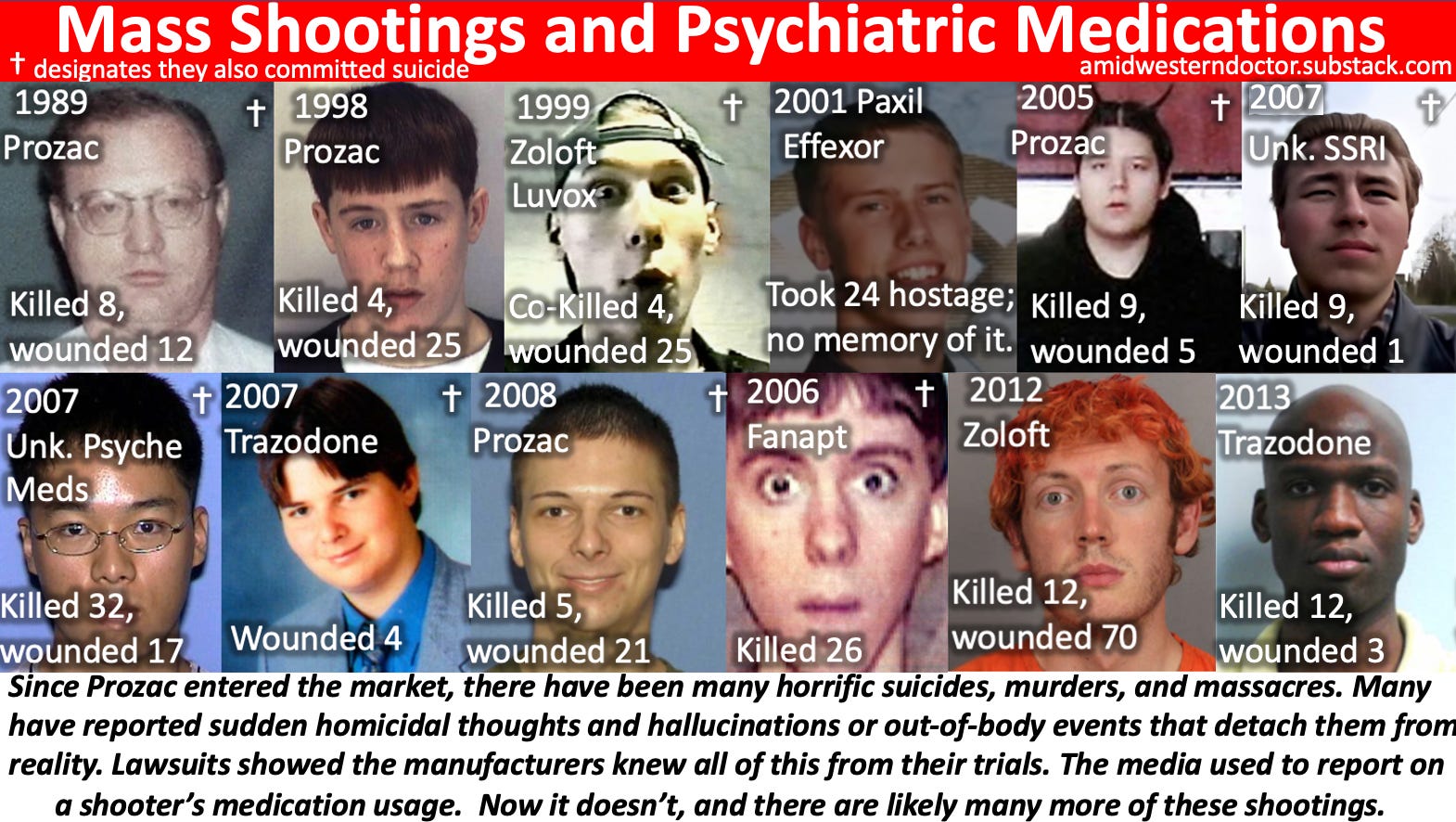 Every time there is another mass shooting or high-profile murder/suicide, society keeps asking why and guns are often pinned as the culprit. It is high time that we seek to try understanding what may be behind these acts of violence in our communities. Could they be connected to the dangerous side effects associated with psychotropic drugs?