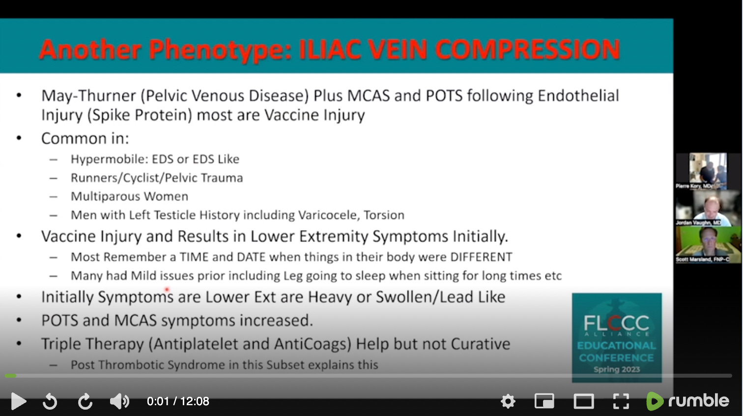 •Dr. Vaughan believes that the (well-documented) damage the spike protein causes to walls of the blood vessels weakens the iliac vein enough that pressure from the iliac artery can cause it to collapse. In turn, he has collected compelling radiography to prove it.