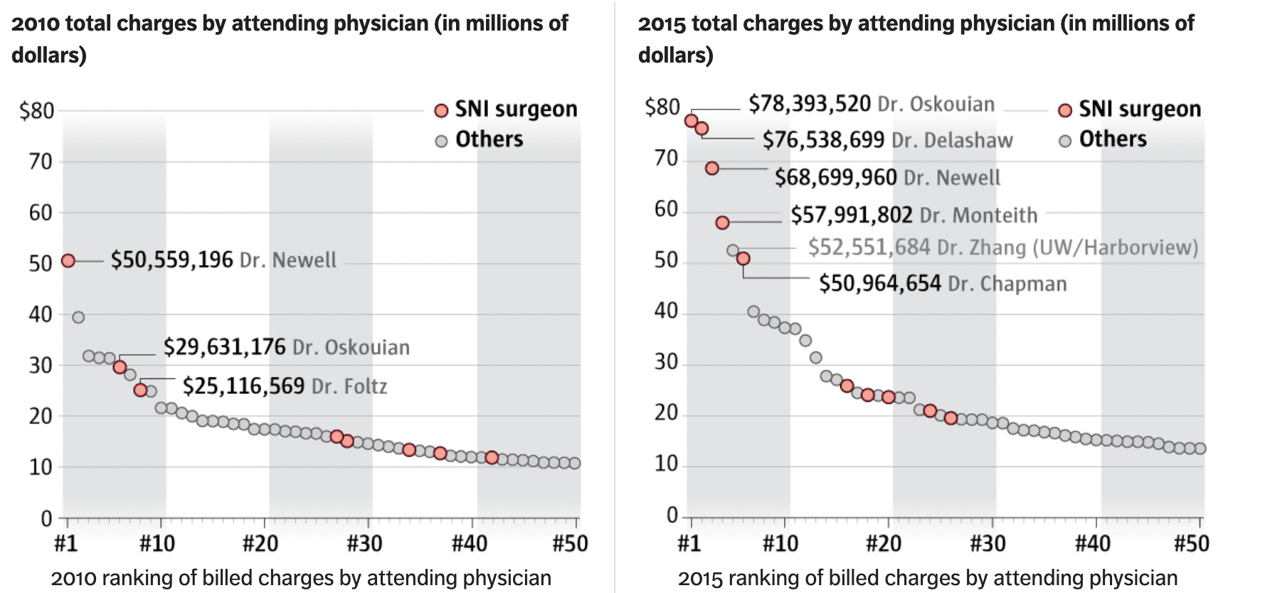 At the same it’s important to note that while some neurosurgeons followed in Deleshaw’s footsteps, many others did not and prioritized the welfare of their patients over making even more money. However, the key takeaway from this story is not Deleshaw’s conduct, but rather that the administrators in both California and Washington sided with the unethical doctors because they made way more money for the hospital (and likewise changed the physician’s compensation structure to incentivize them performing more of these unsafe surgeries).