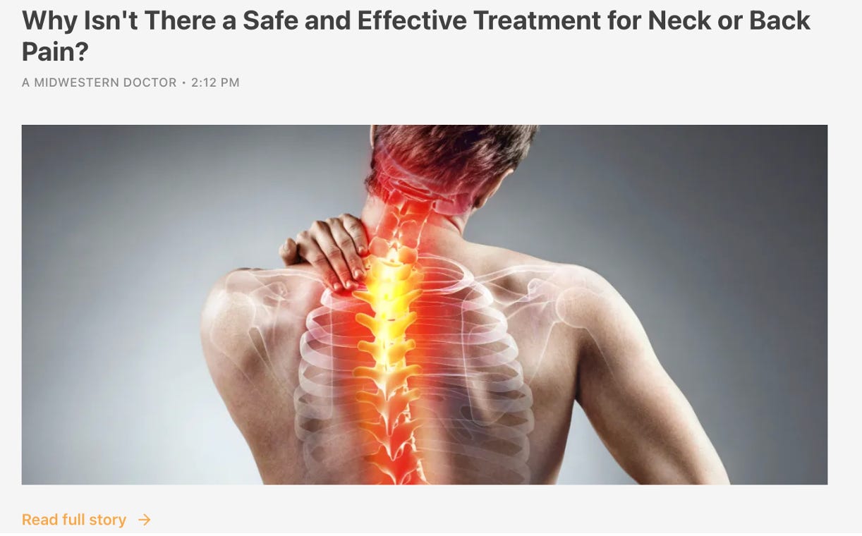 Tragically, an even worse situation exists with spinal surgeries, which I would argue results from a high degree of ambiguity with when they are justified and them being one of the most profitable areas in medicine.