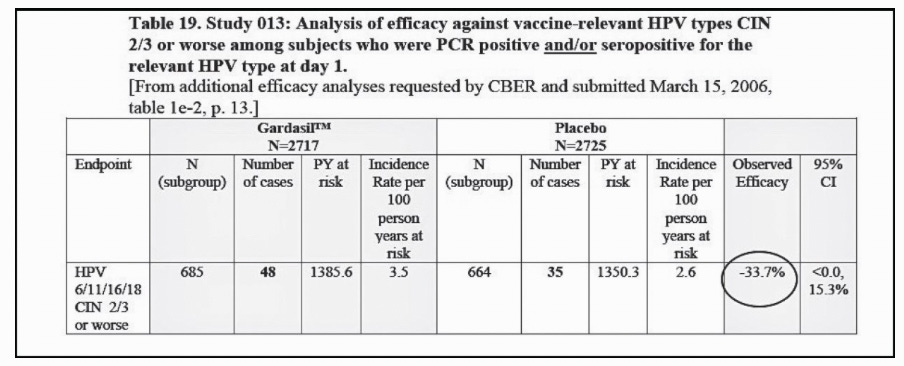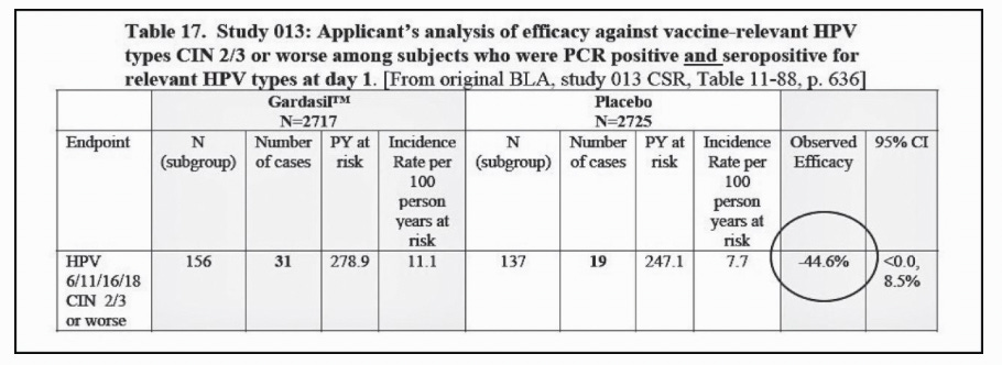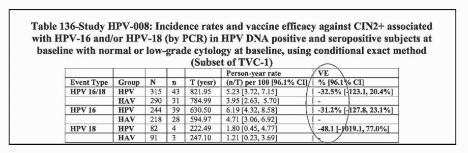 Negative HPV Vaccine Efficacy