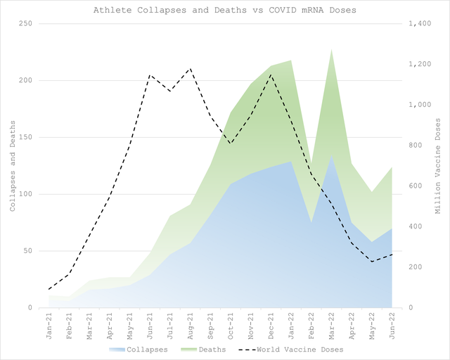 Before long, reports began emerging of a variety semi-celebrities dying not long after vaccination, a large increase in news reports of individuals “dying suddenly“ and an unprecedented rate of heart attacks or deaths in young athletes on the field. Although there were a variety of critical safety signals that were missed, the fact that these deaths were dismissed, and the vaccination program was allowed to proceed indicated to me that governments around the world were fully aware of the dangers of vaccines and consider them to be acceptable collateral damage for the goal they were working towards.
