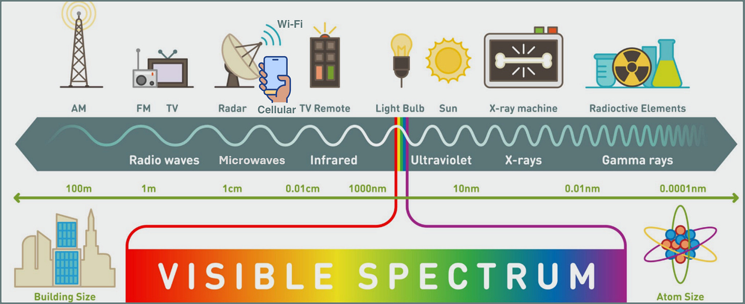 Note: pioneering experiments have shown certain sensitive individuals can see wavelengths outside the visible light spectrum.16