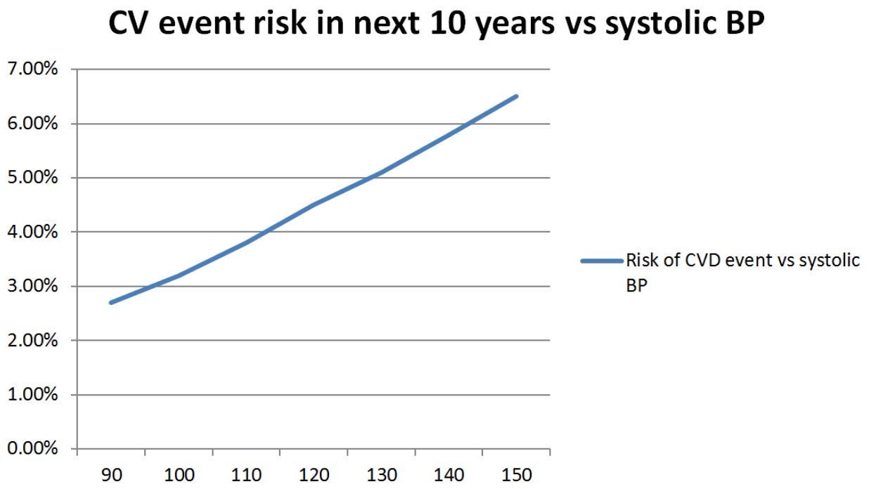Note: when this (forgotten) paper was published, the conventional blood pressure thresholds were less aggressive. I modified its graph to match the current guidelines.
