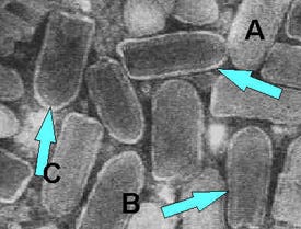 One of the major challenges of studying the “pleomorphic cycle” is that many parts of it are smaller than the magnification limit of light microscopes (500 to 1500x magnification). Once something is smaller than the wavelength of light, it cannot be seen in a light microscope and most of the pleomorphic cycle lies just beyond that optical magnification limit. The technology we have that provides higher magnification, electron microscopy, requires the samples to be killed and then fixed in place.