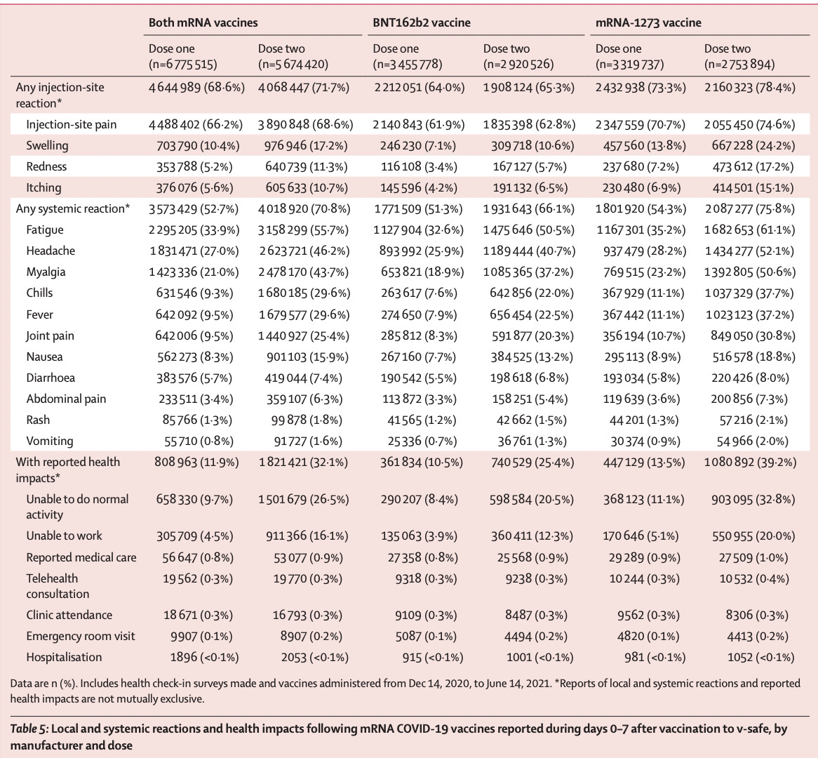 There is a lot that still cannot be determined from the V-safe data until it is correlated with VAERS and the additional free form text responses are made available (this is where most of the severe injuries will be made evident). However, in my assessment, this data clearly shows the CDC and FDA were fully aware this vaccine was significantly more dangerous than any other vaccine on the market and unlike the other systems, since this system was specifically designed to answer that question there is no way for them to argue otherwise. For those interested, Steve Kirsch has provided a more detailed summary demonstrating the CDC is deliberately ignoring evidence of safety issues from these vaccines.