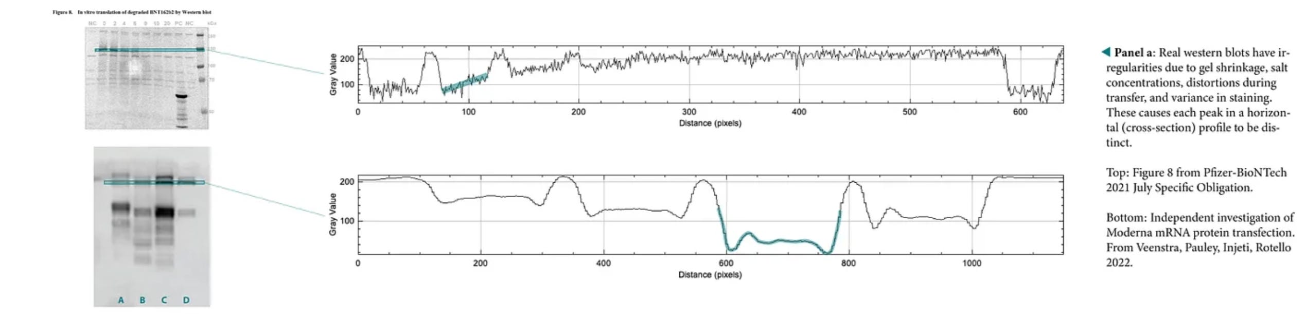 For those wishing to do a more detail forsenic investigation of these blots, the best “independent” paper we’ve come across showing Western Blots of Pfizer’s final product can be found within this study. The point to keep in mind when looking at all of Pfizer’s blots (both within that article and with those presented in this article) is that the western blots do not match each other.