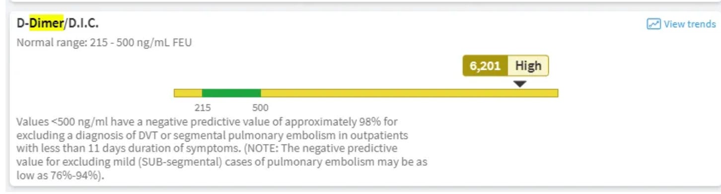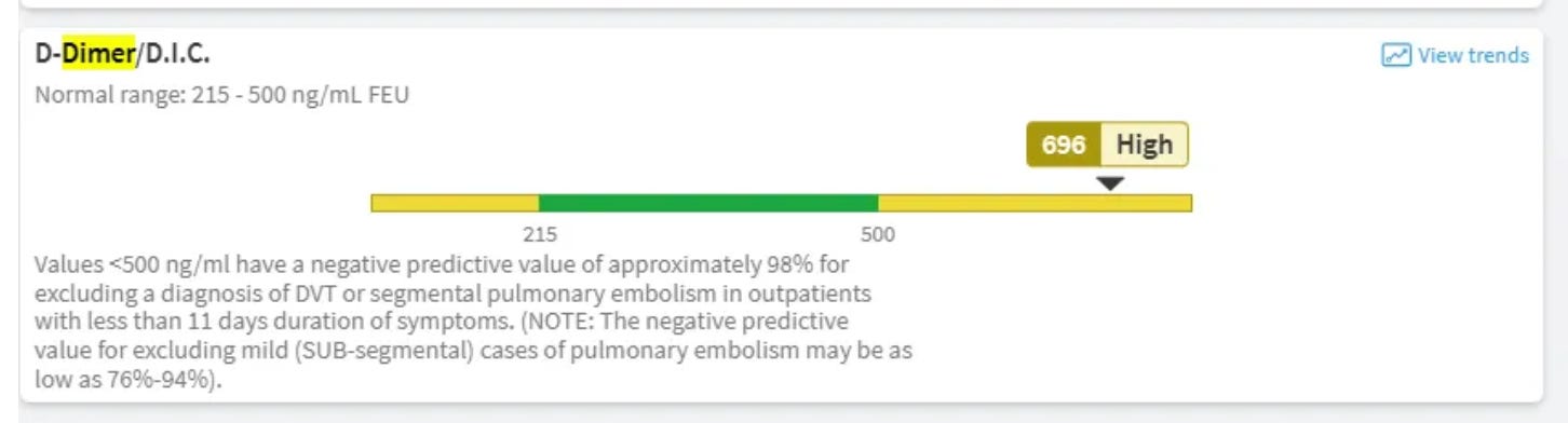 Additionally, beyond it being apparent from looking at her, her lab work showed she was having a lot of clots breaking down in her body.