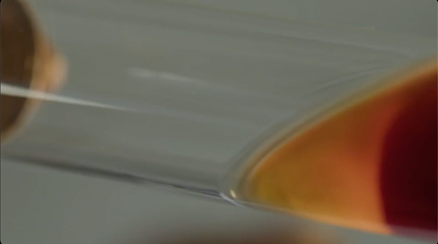 •The blood separates from its surrounding plasma (this is best seen in the scenes where it is shown within a test tube, such as the one below).