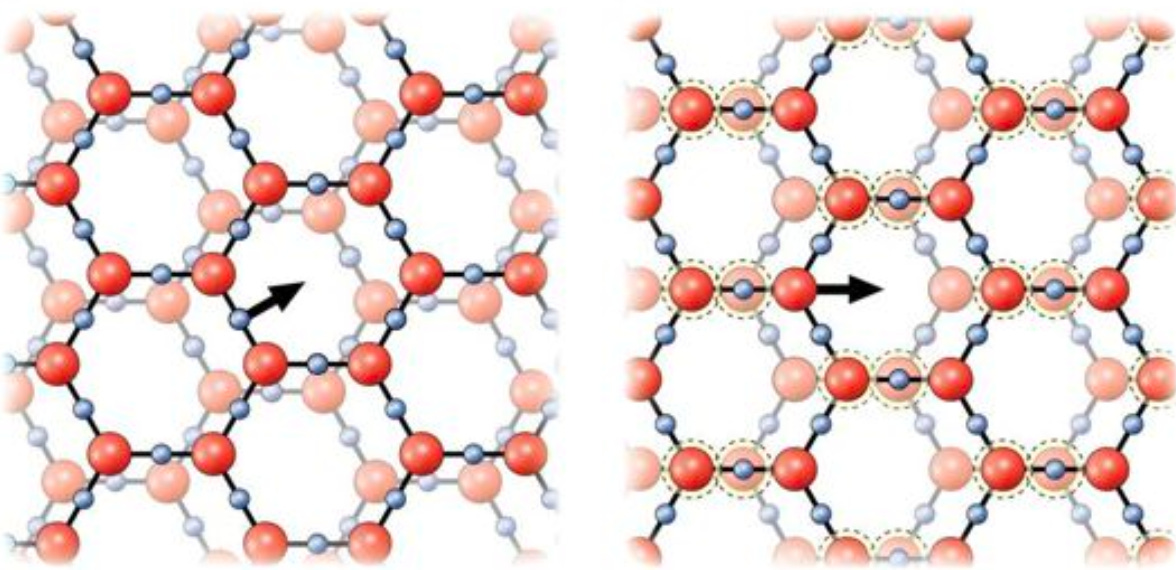Due to the shape of this lattice, each plane can easily slide past the adjacent layer and slot into the next alignment between those planes (which helps to explain some of the mechanical properties of EZ water interfaces), and electrons can easily travel through the lattice (resulting in it being approximately 100,000 times as conductive as the surrounding unstructured water).