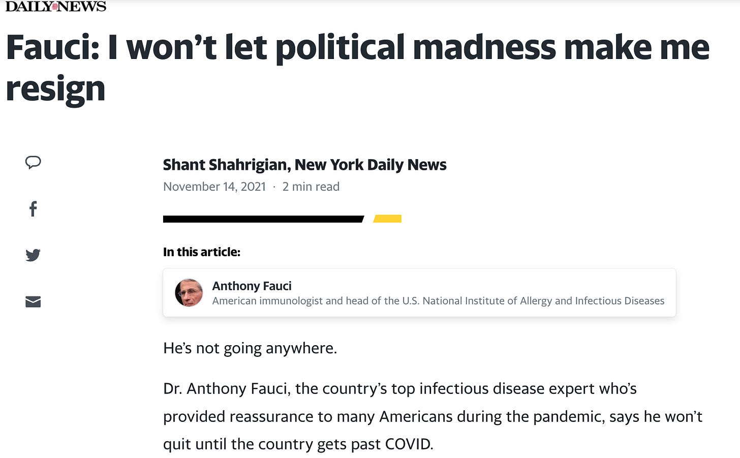Throughout this, Fauci has remained adamant he would never leave his position (“absolutely, unequivocally”).