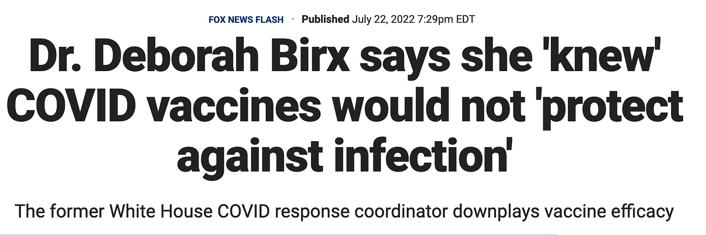 Out of nowhere, on July 22, Deborah Birx (the individual who I argued was the individual most responsible for the disastrous COVID-19 response by fanatically pushing the lockdowns and vaccines) admitted the vaccines were a scam.