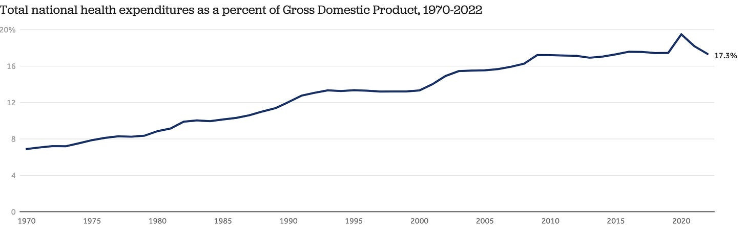 In tandem with this shift, the costs of American healthcare have ballooned: