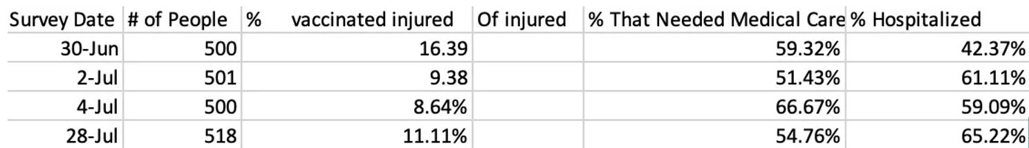 •Steve Kirsch and the Vaccine Safety Research Foundation hired polling firms to directly survey the public. In 2022, of those vaccinated: