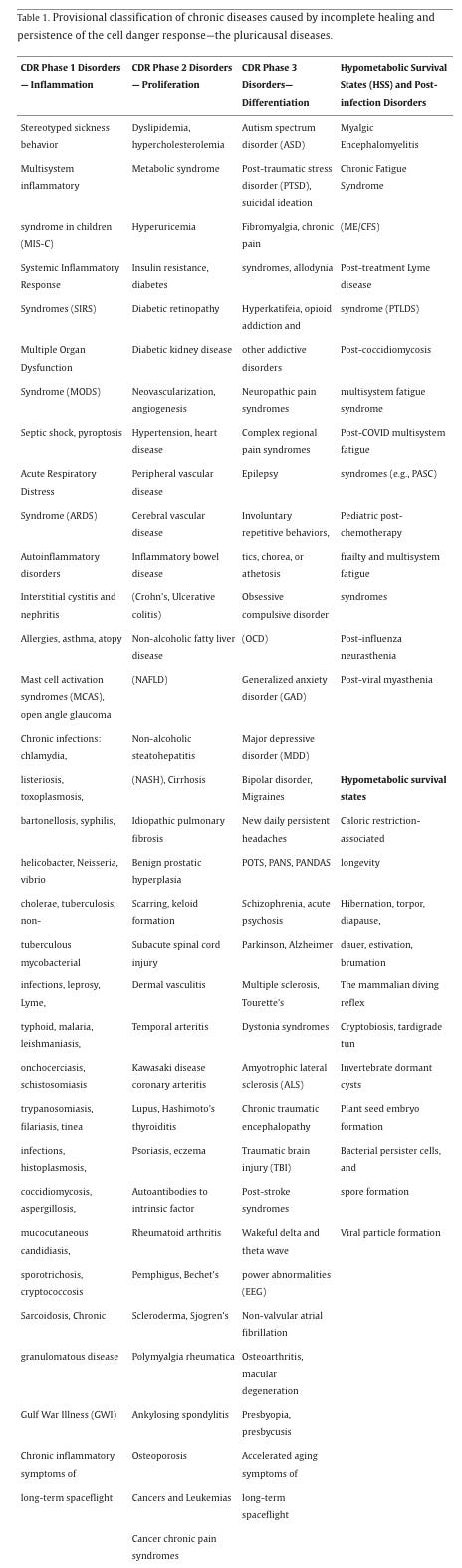 Another key point with the cell danger response in practice is that much like circulatory obstructions, it can either localize within a specific region of the body or be part of a broad process affecting the entire body or be some combination of the two (e.g., debilitating systemic diseases often first appear in sites of previous injury and seeing unusual localized issues immediately appear in COVID vaccinated patients at the start of the vaccine roll out was a major red flag to me that forecast the much broader issues which would follow).