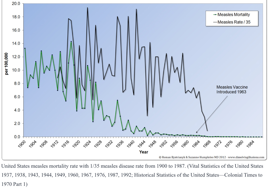 At the time the measles vaccine was developed, it was highly questionable if it was needed, or as the below graph shows, if it was responsible for the benefits attributed to it.