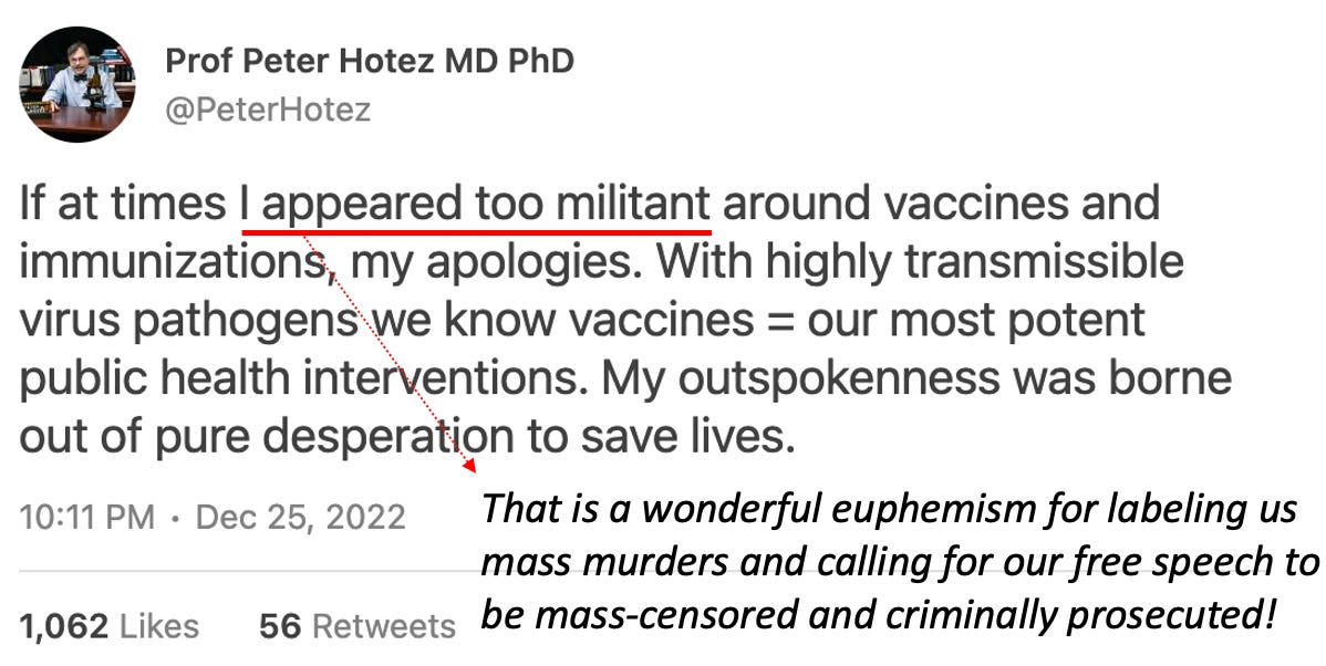 Why Does Peter Hotez Think We Are Mass Murderers?
